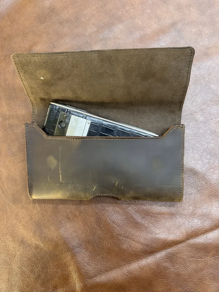 Кожа Crazy Horse отличается естественным блеском и небольшими неровностями, которые возникают в процессе выделки. Это делает каждый чехол уникальным. При регулярном использовании кожа приобретает характерный вид, сохраняя привлекательность на протяжении многих лет.