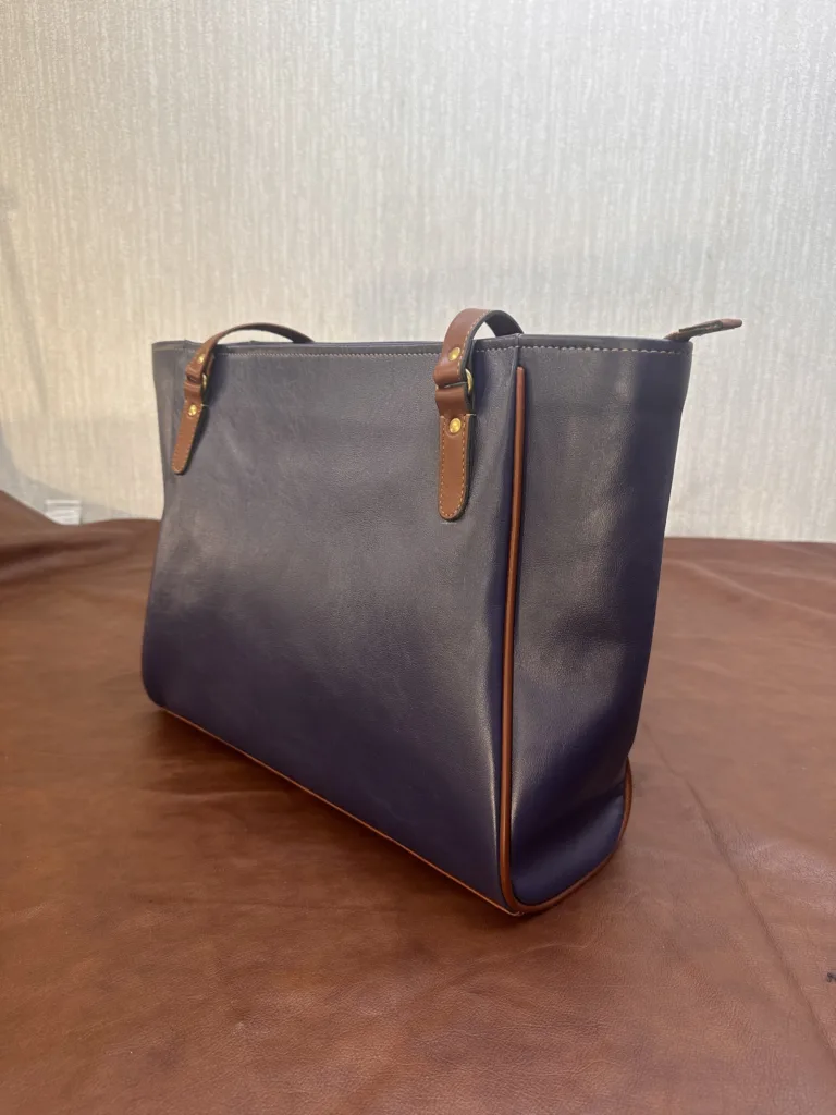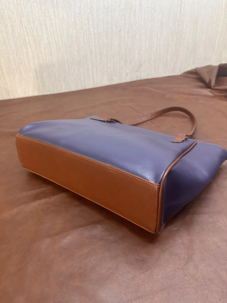 Молния надежно закрывает отверстие, предотвращая случайное выпадение содержимого. Двойная ручка обеспечивает равномерное распределение веса. Натуральная кожа сохраняет форму и текстуру со временем, придавая изделию элегантный вид. Такая сумка станет надежным помощником в офисе, учебе или путешествиях.