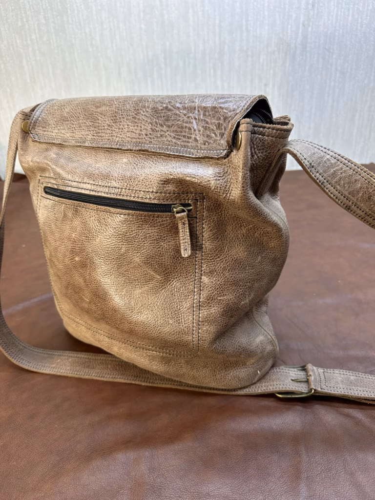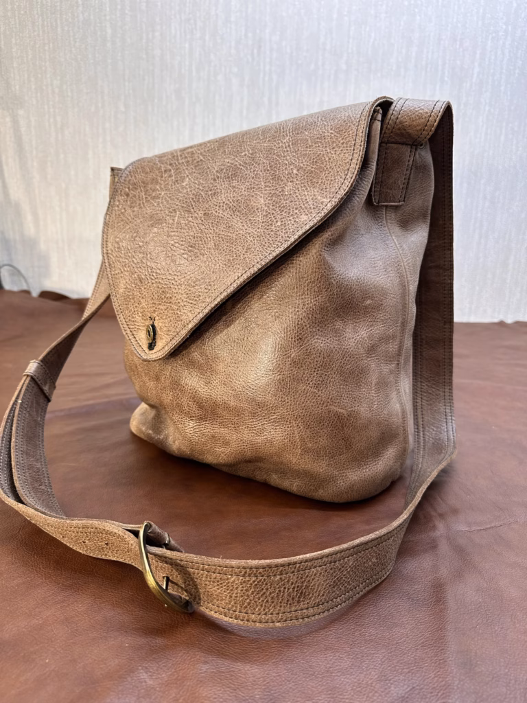 Сумка выполнена из натуральной кожи коричневого оттенка. Материал имеет естественную текстуру и сохраняет форму даже при длительном использовании. Клапан на кнопке обеспечивает надежное закрывание, а регулируемый ремень позволяет носить сумку через плечо или на руке. Фурнитура выполнена из металла, что гарантирует долговечность эксплуатации.
