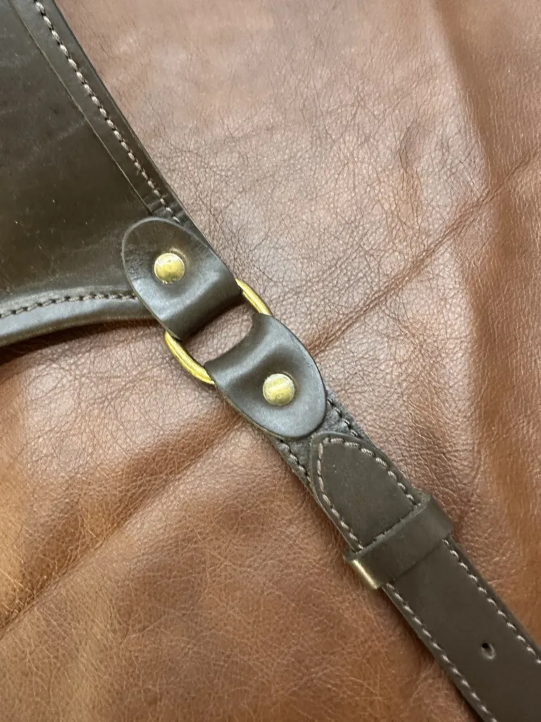 Сумка-ягдаш изготовлена из натуральной кожи крупного рогатого скота толщиной 2,5 мм. Материал обладает естественной текстурой и придает изделию элегантный вид. При выборе кожи учитывается её прочность и долговечность, что гарантирует сохранение формы и внешнего вида со временем. Натуральная кожа не содержит синтетических добавок, что обеспечивает комфорт при использовании и безопасность для кожи.