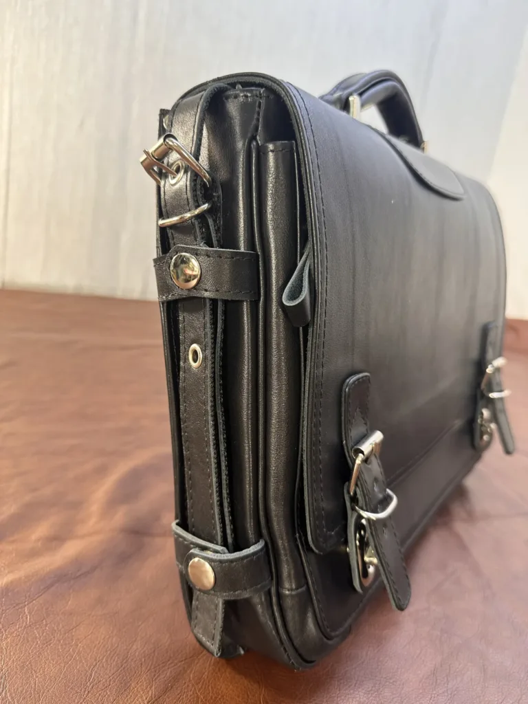 Портфель из натуральной кожи КРС обеспечивает надежность и долговечность. Толщина кожи позволяет сохранять форму даже при частом использовании. Металлическая фурнитура не подвергается коррозии, что гарантирует стабильную работу застежек и ремней. Сшивка выполнена аккуратно, без лишних ниток, что подчеркивает профессиональное качество изделия.