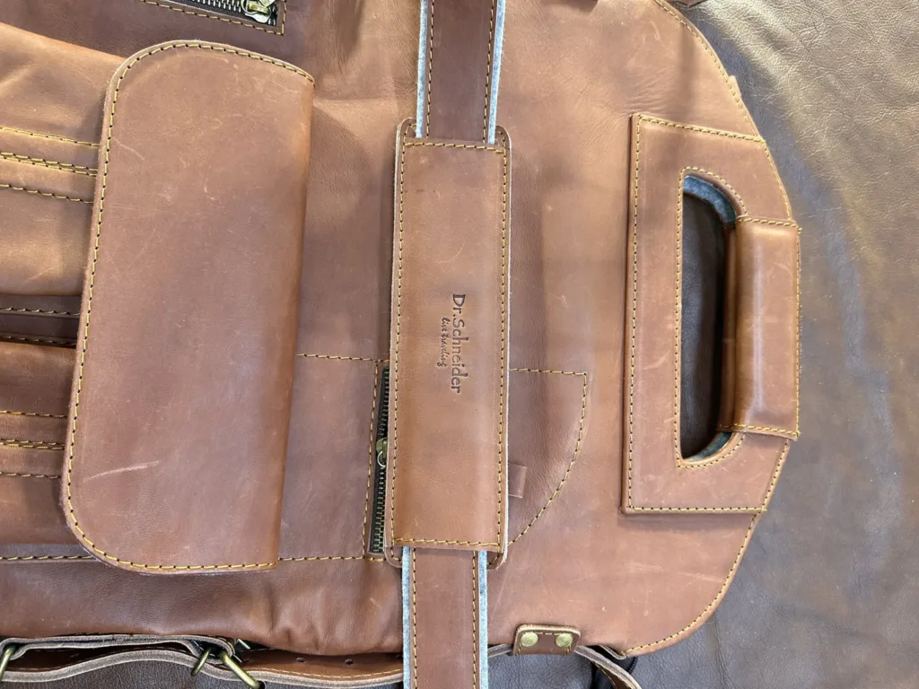 Каждый элемент сумки обработан с использованием традиционных методов, что гарантирует прочность швов и надежность фурнитуры. Размеры сумки — 31 см в длину, 40 см в высоту без ручек и 7 см в толщину — позволяют вместить ноутбук, папки с документами и другие необходимые вещи. Материал сохраняет свои свойства даже при регулярном использовании.