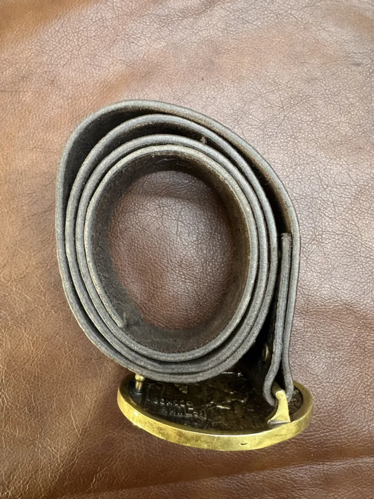 Ремень изготовлен из натуральной кожи «чепрак», известной своей прочностью и долговечностью. Толщина материала составляет 3,5 мм, ширина — 4 см, а длина — 117 см. Пряжка выполнена ручным отливом, что придает изделию уникальность. На поверхности пряжки присутствует рельефный медвежий узор, добавляющий элемент индивидуальности. Каждый этап работы проводится вручную, что гарантирует высокое качество и внимание к деталям.
