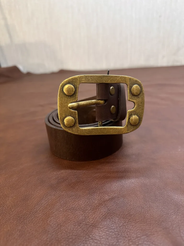 Пряжка выполнена из алюминиевого сплава бронзового цвета, что гарантирует надежное крепление и долговечность. Каждый элемент конструкции, от выбора кожи до сборки, выполнен с учетом максимального качества. Швы и кромки обработаны аккуратно, что подчеркивает внимание к деталям. Гарантия на изделие составляет 1 год, что подтверждает его надежность.