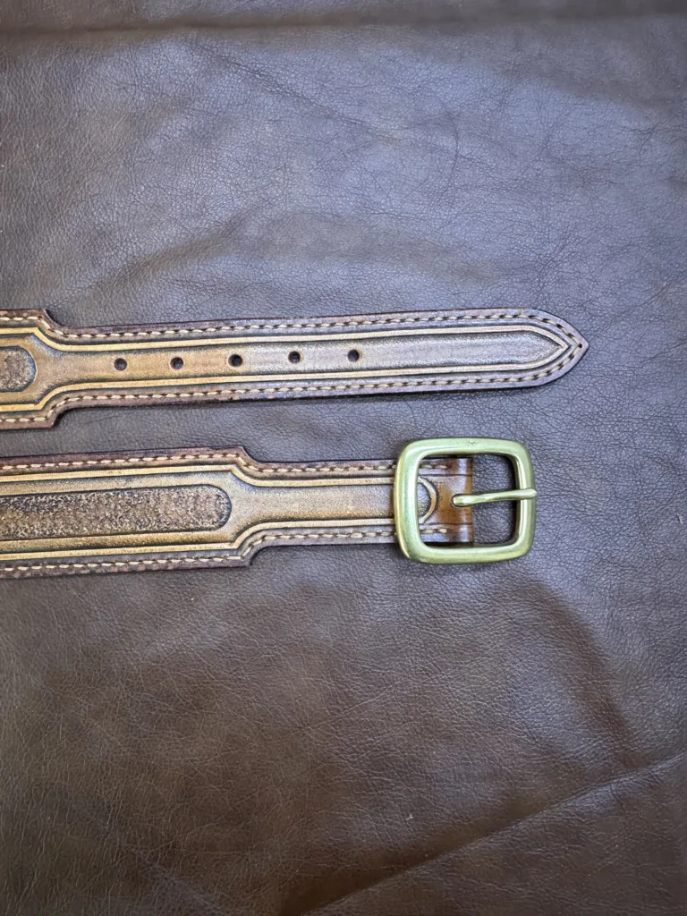 При изготовлении акцент сделан на деталях: швы выполнены вручную, что гарантирует прочность и долговечность. Края ремня обработаны специальным способом, который предотвращает их раздражение и ускоряет износ. Закатка обратной стороны обеспечивает комфорт при ношении, убирая лишние углы и ребра.