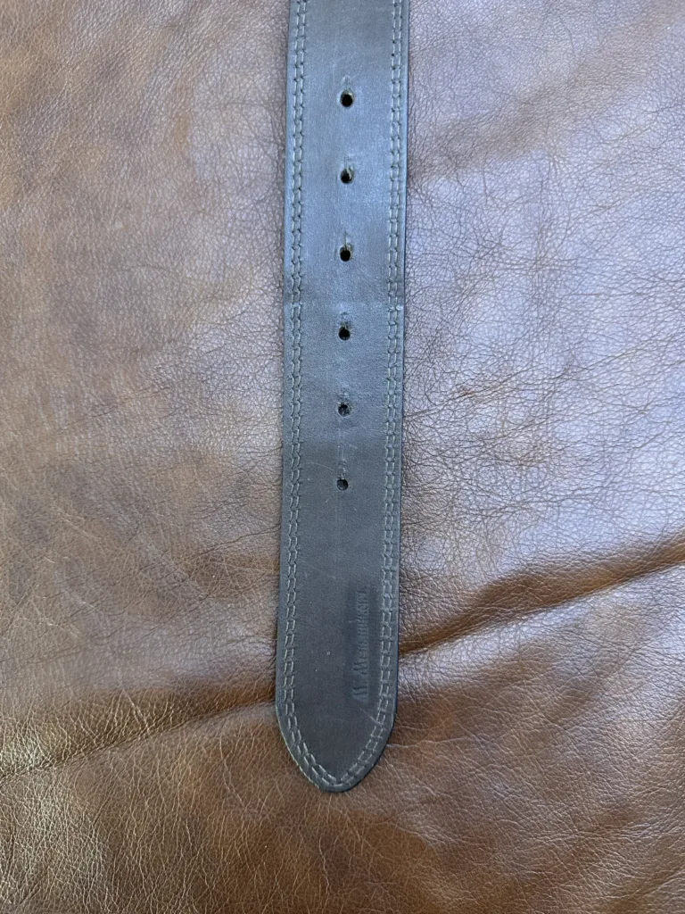 Ремень изготовлен из натуральной кожи «чепрак», известной своей текстурой и долговечностью. Такой материал обладает уникальной структурой волокон, которая придает изделию индивидуальность и износостойкость. Кожа прошла обязательную обработку, сохраняя естественную эстетику и прочность.