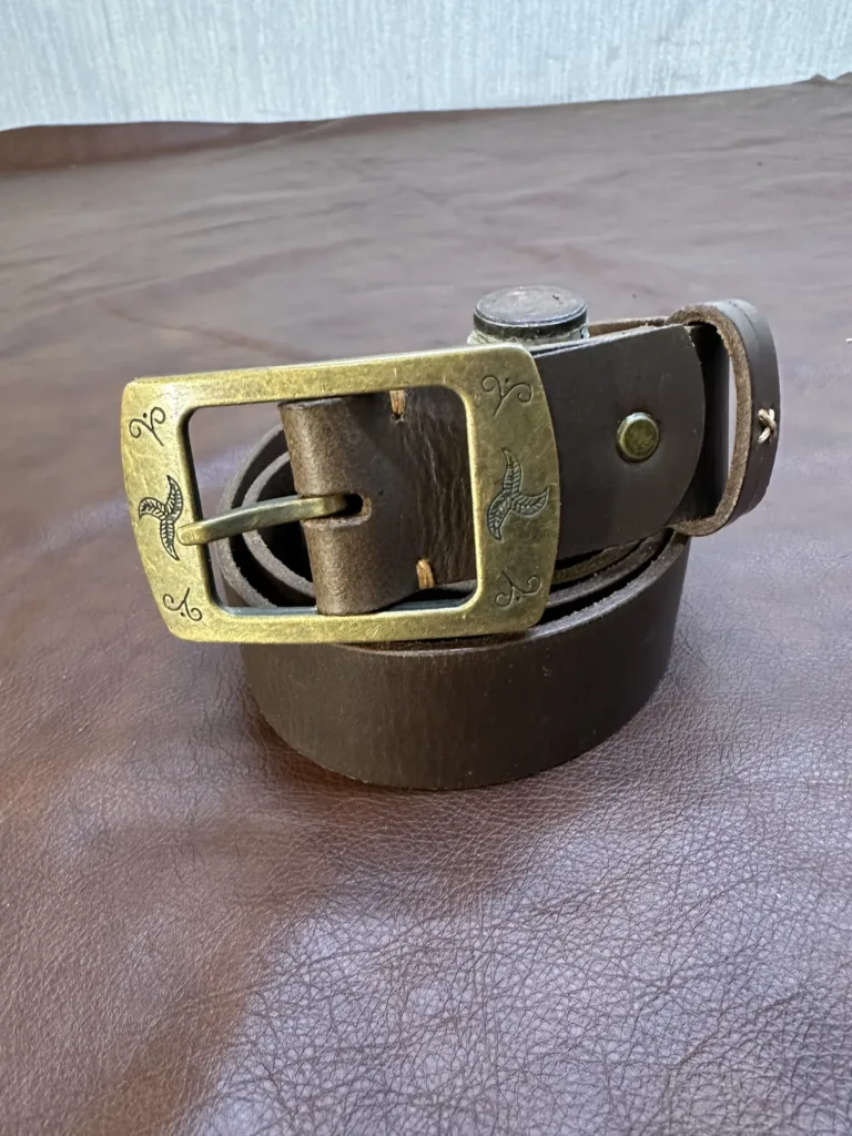 Кожа имеет естественные неровности, которые являются признаком натурального материала и подчеркивают ручную работу. Каждый ремень проходит несколько этапов обработки: от выделки кожи до окончательной отделки. Такой подход гарантирует долговечность и уникальность каждого изделия.