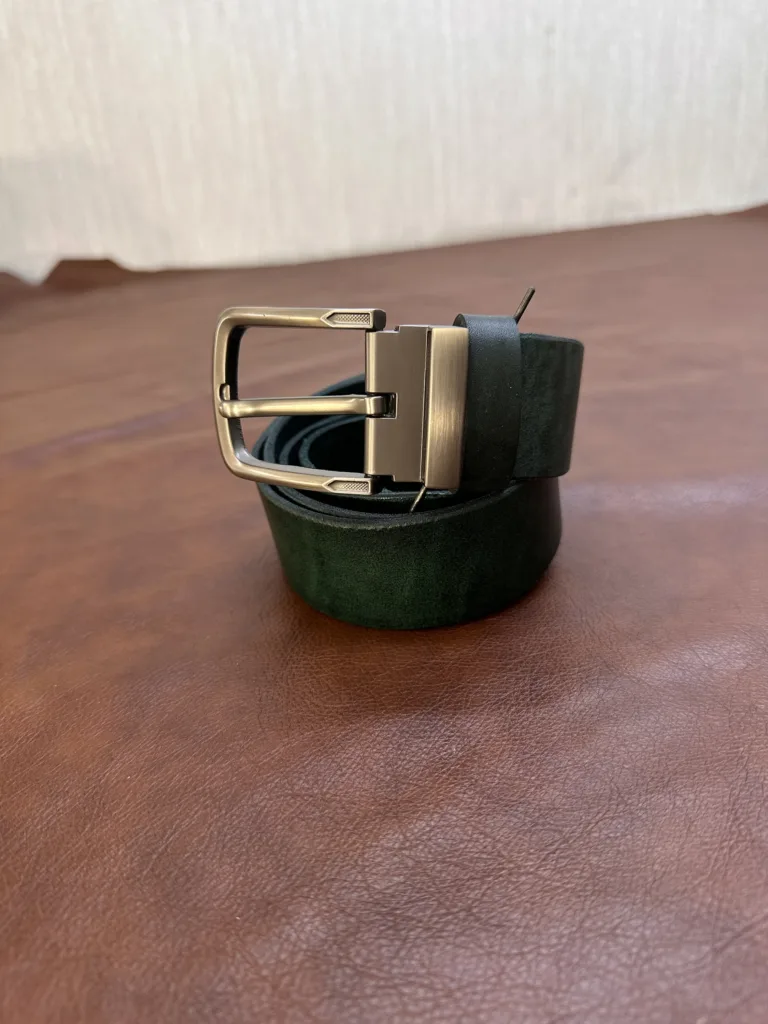 Каждый элемент ремня проработан с вниманием к деталям. Швы выполнены ручной строчкой, что повышает прочность и эстетичность. Края обработаны методом закругления, предотвращая их потрескивание и износ. Обратная сторона ремня закатана, что улучшает его внешний вид и долговечность. Пряжка из металла обеспечивает надежное фиксирование. Список особенностей: