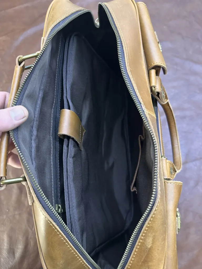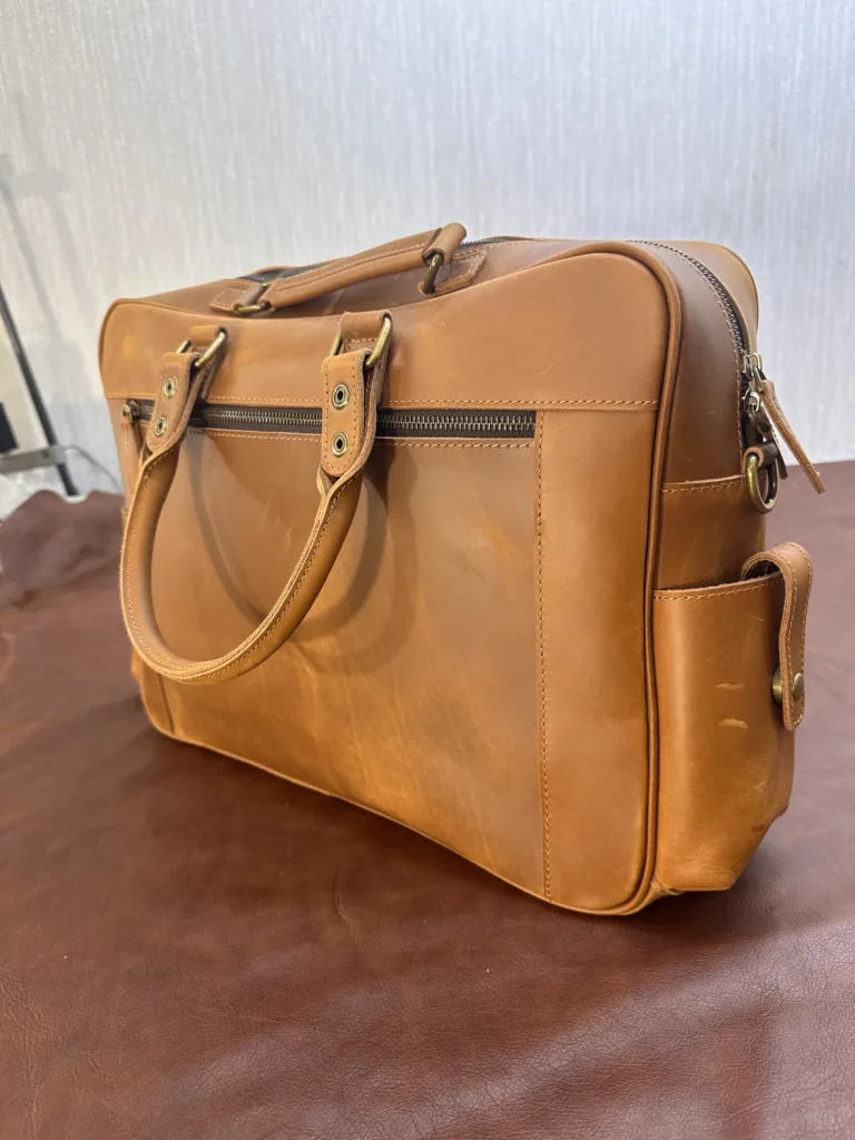 Сумка создана из натуральной кожи Crazy Horse, известной своим уникальным текстурным рисунком и устойчивостью к повреждениям. Материал обладает характерной неровной поверхностью, которая придает изделию индивидуальный вид и сохраняет свежий внешний вид даже после длительного использования. Толщина кожи обеспечивает прочность и долговечность, что особенно важно для путешествий.