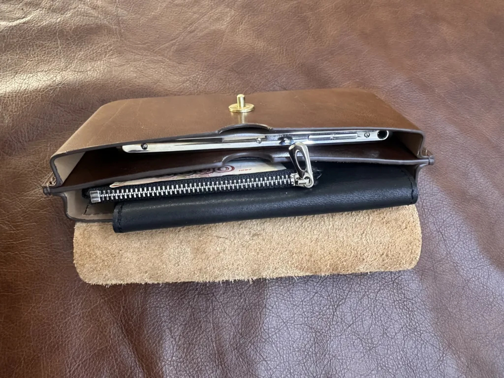 Размеры сумки 18×9×3 см позволяют удобно размещать телефон и небольшие предметы. Открытый слот для телефона обеспечивает быстрый доступ. Материал кожи естественно меняет оттенок со временем, формируя индивидуальный вид. Простой дизайн подходит для разных стилей одежды. Фурнитура выполнена из металла, который не теряет блеска и не ржавеет.
